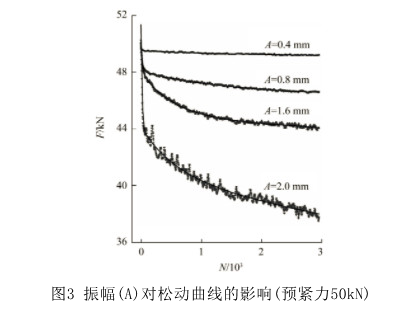 2.2 振幅與預(yù)緊力對(duì)松動(dòng)曲線(xiàn)特征的影響