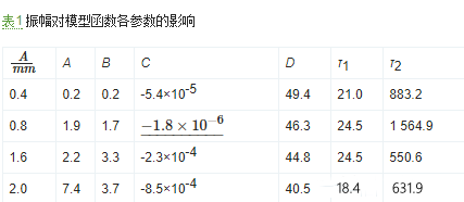 2) 橫向振動(dòng)的振幅越大,模型函數(shù)的參數(shù)A、?B、?C的值越大;預(yù)緊力越小,參數(shù)A、?B、?C的值越大。振幅與預(yù)緊力對(duì)模型函數(shù)的時(shí)間常數(shù)τ1、?τ2的影響目前尚不清楚。