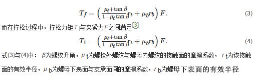 將式(3)與(4)相減可知,在相同的夾緊力下,總是有T?f>T?l。橫向振動(dòng)作用下只要作用在螺母上的驅(qū)動(dòng)力矩大于擰松力矩T?l,螺母在一個(gè)振動(dòng)周期內(nèi)擰松量必大于擰緊量,從而造成夾緊力的減少。這個(gè)機(jī)理已經(jīng)被其他研究者所認(rèn)識(shí)[4,?5,?6,?7]。式(3)與(4)只適用于靜態(tài)的擰緊與擰松過(guò)程,不能通過(guò)單個(gè)振動(dòng)周期內(nèi)外加力矩的變化推導(dǎo)出夾緊力的變化。